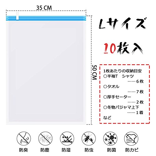 圧縮袋 衣類圧縮袋 Love-KANKEI 掃除機不要 防塵防湿 防虫防カビ 繰り返し使用出来 衣替え収納/旅行/引越し/出張/家庭 Lサイズ 10枚組