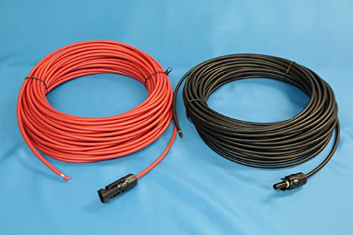MC4コネクター付きのソーラーパネル延長ケーブル2本1組のペアーです。 コネクター付きなので、直ぐに配線も可能です。 長さ:20m×2本 断面積:2.5sq 太さ:5.3mm 定格電圧:1800V 定格電流:30A 使用温度範囲:-40℃~+90℃ 取得認定:TUV その他:防滴加工、MC4コネクター(オスメス1組)
