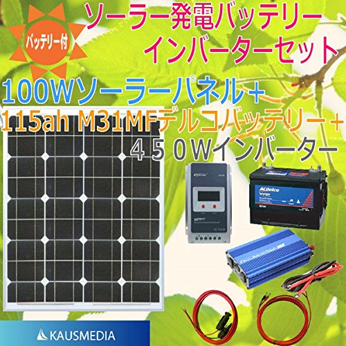 100Wソーラー発電蓄電インバータセット デルコM31MFバッテリー メルテック500Wインバーター MPPT