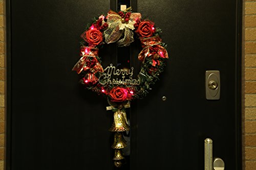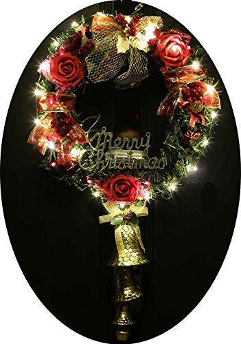 特注品!クリスマスリース ローズ ホワイトストリングライト付 音と光で彩る ゴージャス LED メロディ クリスマスキャロル