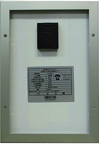 最大出力:5W 最大出力動作電圧:16.6V 最大出力動作電流:0.3A 開放電圧:21V 短路電流:0.32A 最大システム電圧:1000V 重量:1.0kg 枠素材:アルミ サイズ:190*290*17(mm)
