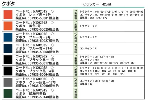 KBL 農業機械用塗料用 タッチアップスプレー KG0293S 12本セット [クボタ:ホワイト白-7号][内容量420ml]