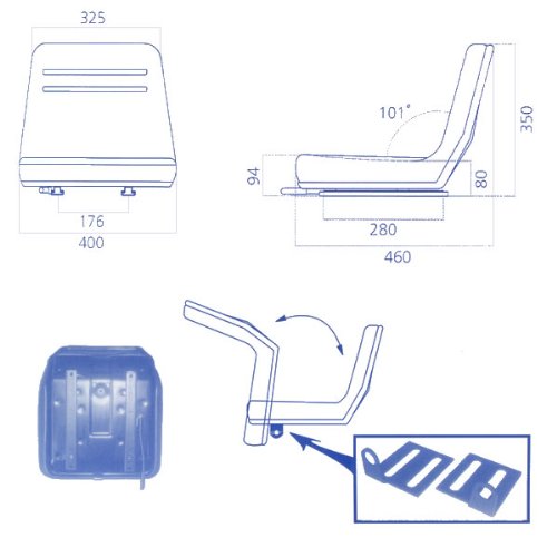 商品名農業用オペレーターシート 商品番号KBL-OP サイズ400×350×460(mm) レール間隔176(mm) 製造中国製