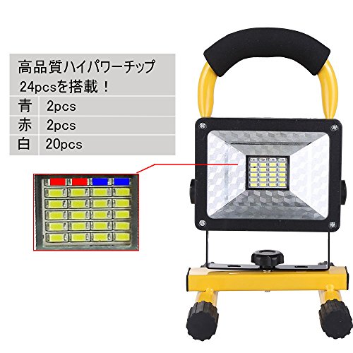 「KBook」 led投光器 充電式 18650電池付属 usb 作業灯 携帯に充電する可能 24W 赤ライト&青ライト搭載 探照灯 夜釣り キャンプ 夜間作業などに大活躍 地震災害の非常灯としても