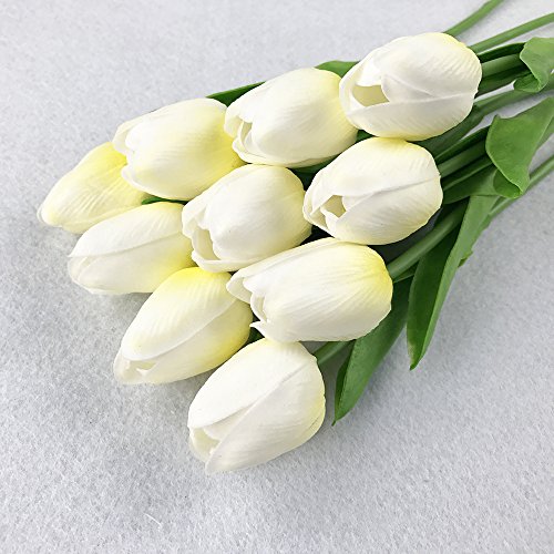 KCOOL 造花 花束 チューリップ フラワー 本物そっくり 三つ色あり 10本セット (淡い黄色)