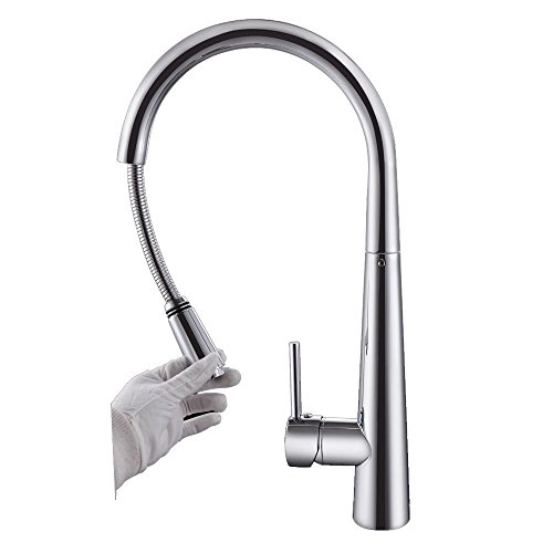 KES L6903 真鍮 シングルレバー ハイアーク プルダウン式 キッチン用水栓 引き込み式 プルアウト式水栓 回転式 クロムめっき 並行輸入品