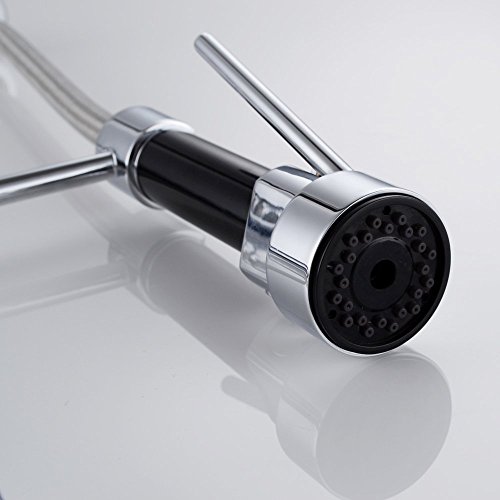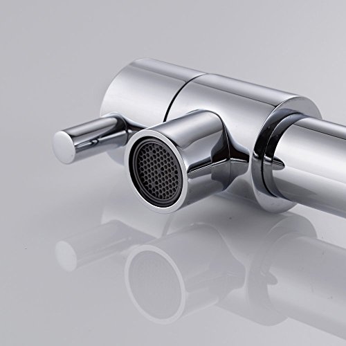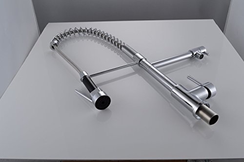 KES L6908 真鍮無垢 シングル ハンドル プルダウン 予備洗い スプリング式 キッチン 水栓 回転する吐水口2個付き クロームめっきめっき 並行輸入品