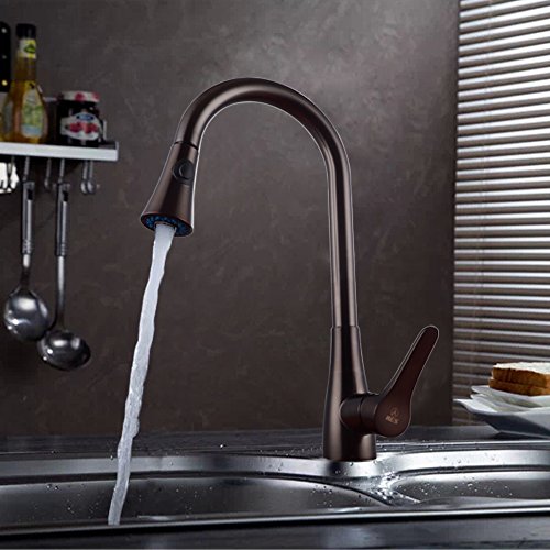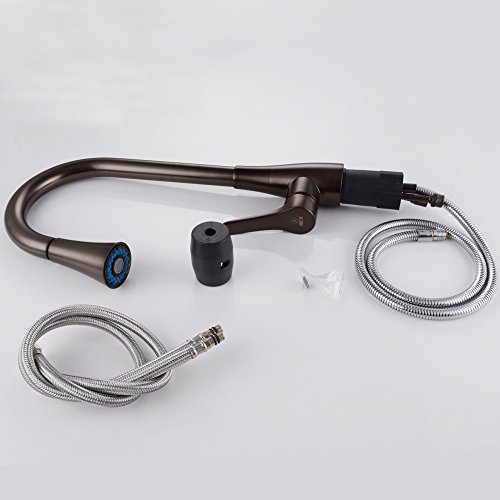 KES L6910-7 真鍮 シングル レバー ハイアーク プルダウン式 キッチン用 引き込み式 プルアウト式 回転式水栓 オイルブロンズ 並行輸入品