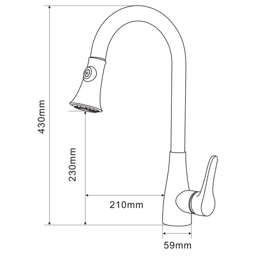 - アーチの高い吐水口で水栓の下に十分なスペースができ、引き出し式スプレーシャワーホースでシンクのお掃除も簡単です。
