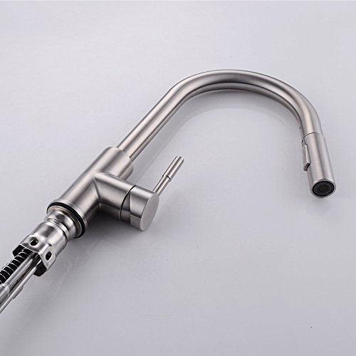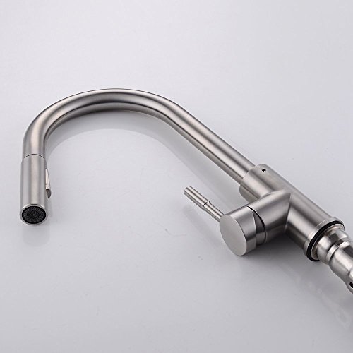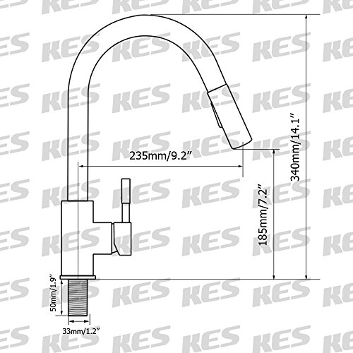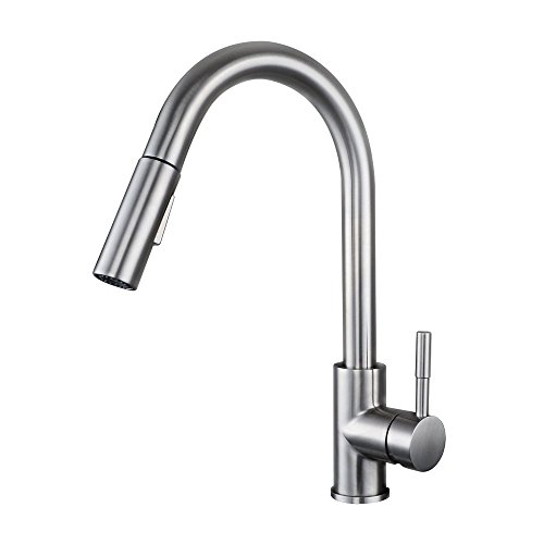 KES LEAD-FREE SUS 304 Stainless Steel Pull Down Kitchen Faucet Single Handle Contemporary Style Bar Sink Water Mixer Tap with Pull Out Sprayer Swivel High Arc Spout, Brushed Finish, L6957 [並行輸入品]