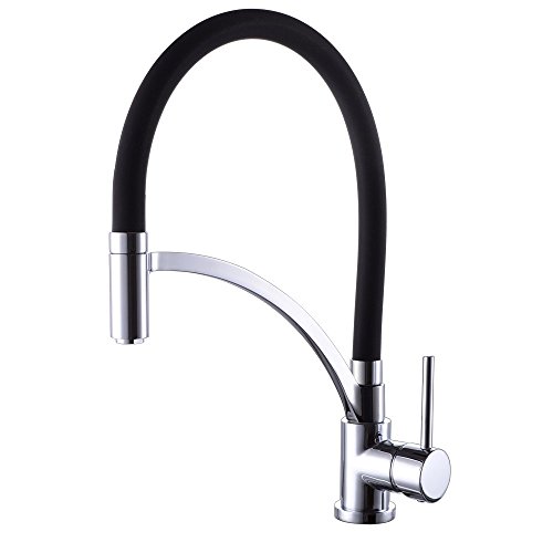 KES Kitchen Faucet Pull Out Spray Head Single Handle Single Hole Sink Pre Rinse Mixer Tap with Pull Down Sprayer, Polished Chrome and Black, L6914-BK [並行輸入品]