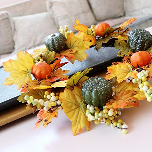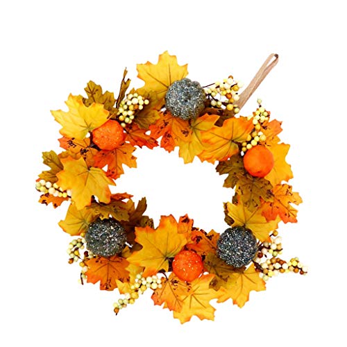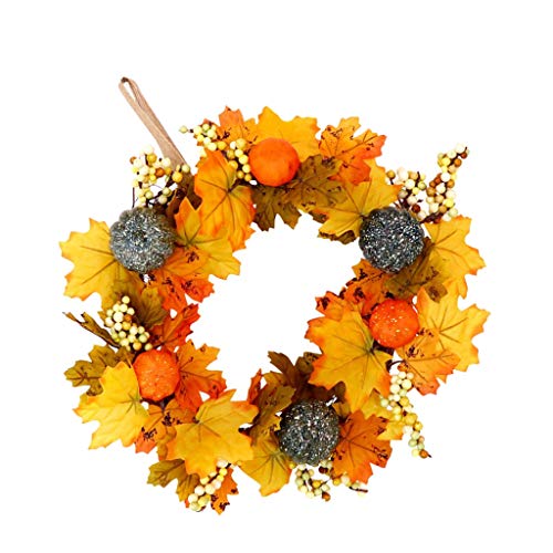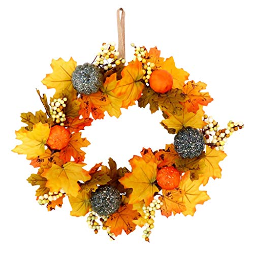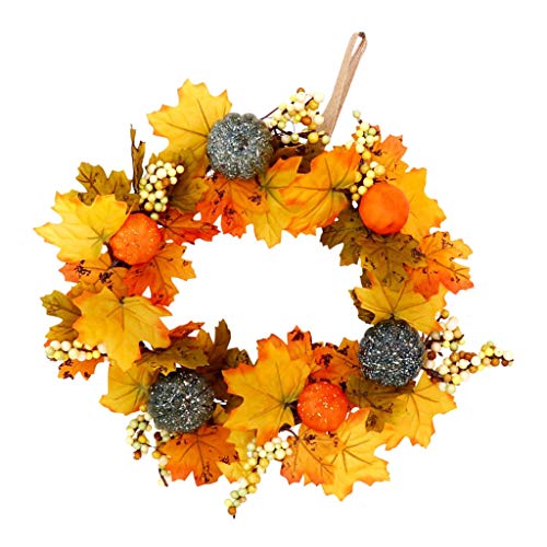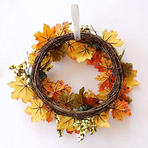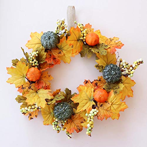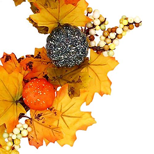 - 人工のラタンのハロウィーンの菊のメープルカボチャの花輪、ハロウィンのための鮮やかな自然感謝の日の装飾