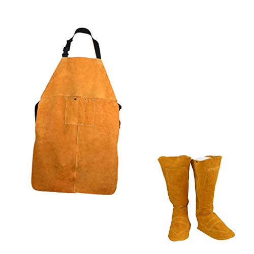KESOTO 2個入 溶接用 作業エプロン+安全保護スパッツ 1ペア 牛革 耐火性