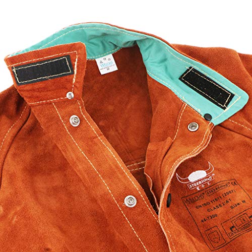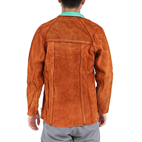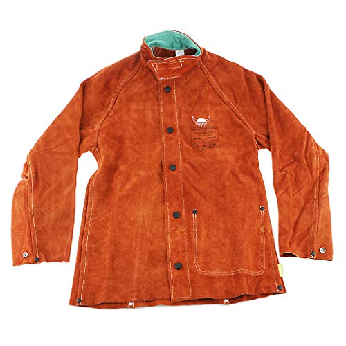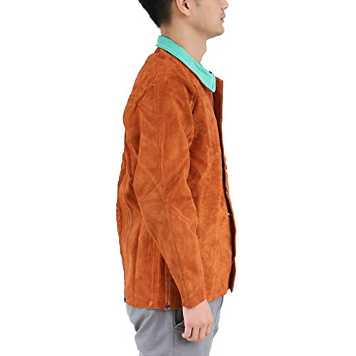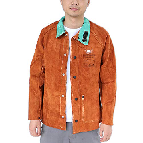 KESOTO 溶接ジャケット 作業コート 断熱性 難燃性 牛革 防護服 スパッタ保護 やけど防止