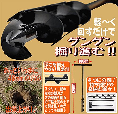 - 杭打ちや園芸などの穴掘りに便利なドリル型の穴掘り機です。くるくると回すだけで直径約48mmの穴を掘ることができます。