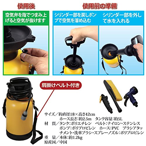 ポータブル 加圧洗浄機 5L 持ち運び 掃除用 (ベランダ・網戸・玄関・ 洗車などに)