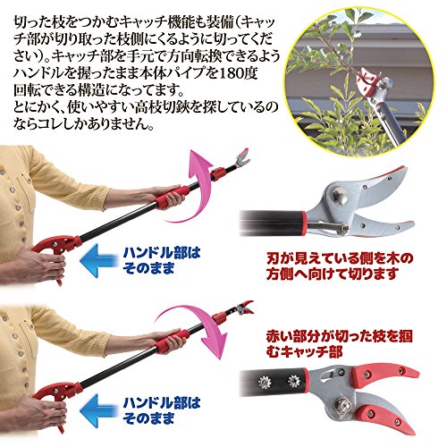 高枝切りバサミ 軽量 伸縮式高枝切りばさみ (92~142cmの4段階調整+切った枝をつかむキャッチ機能付き)