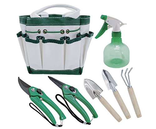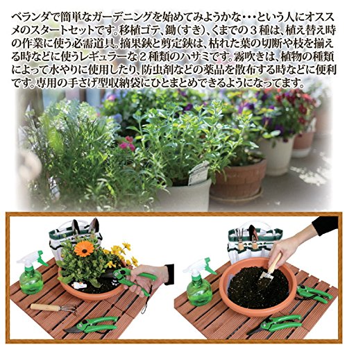 [セット内容]移植ゴテ×1、鋤(すき)×1、くまで×1、摘果鋏×1、剪定鋏×1、霧吹き×1、収納袋×1