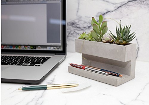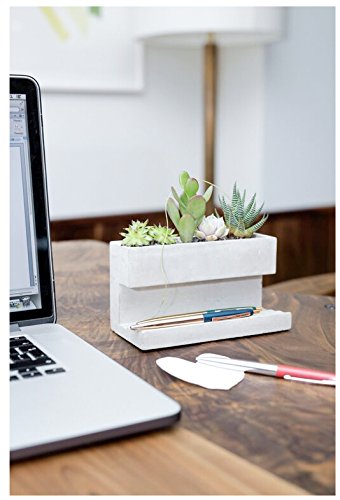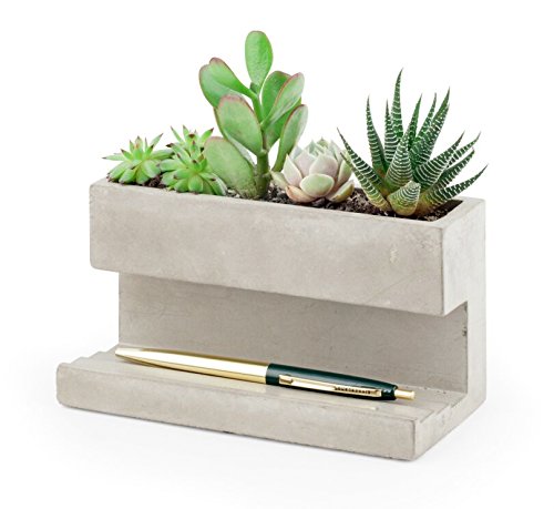 コンクリート製の卓上プランター。 Lサイズの下段はペンホルダーやカードホルダーとして。 Sサイズはペンスタンドとしても。