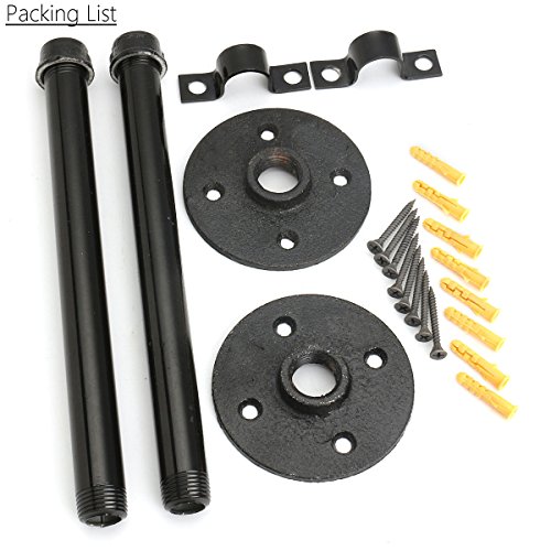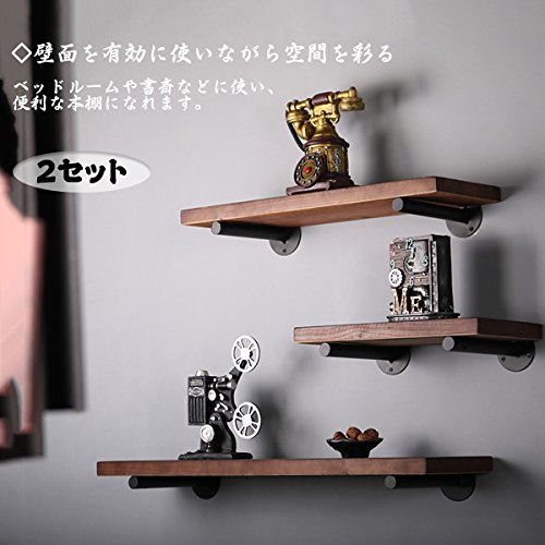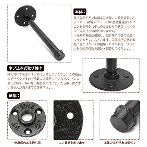KING DO WAY diy 棚受け 金具 ブラケット アイアンパイプ 黒 柱 #22cm 金属 ブラック 工業風ガス管 アンティーク調 ネジ付 2本入り