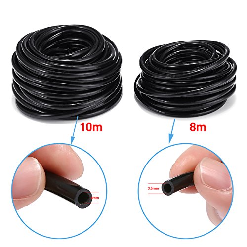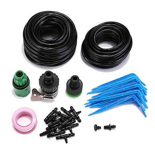 - 【セット内容】10m x 1/4”(4mm)ホース、8m x 3mm ホース、15 x ブルードリッパー、15 x ティージョイント、2 x 蛇口コネクター、1 x テフロンテープ、1 x 1/4" クイックコネクター、1 x エンドブロック、1 x マニュアル