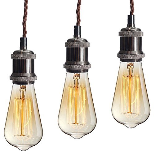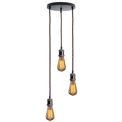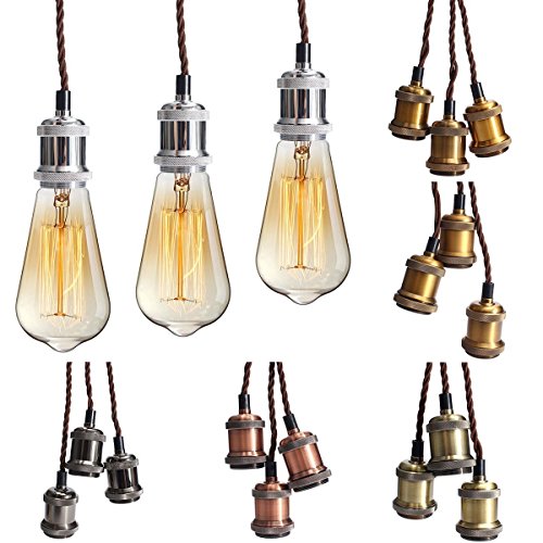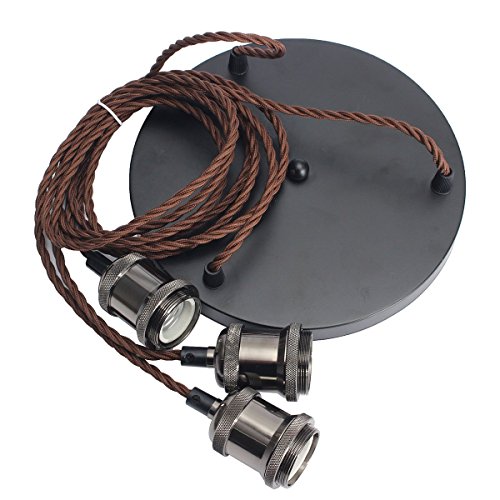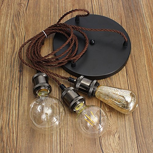 KINGSO E26/ E27 エジソン インダストリアル ペンダント 電球ホルダー 3-in-1 ランプホルダー セラミックランプ VDE証明書取得済 吸盤付き 3芯線式 ブラウンなワイヤー 110V-220V 電球なし ブラック