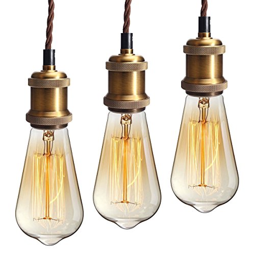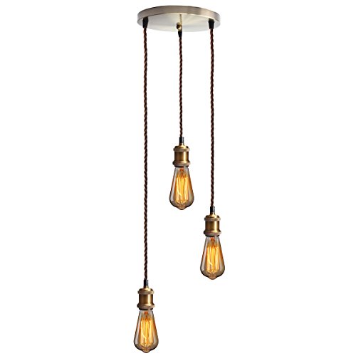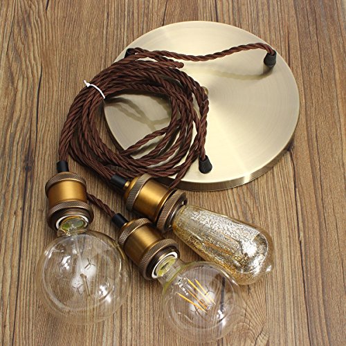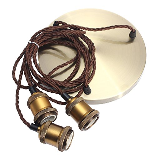 KINGSO E26/ E27 エジソン インダストリアル ペンダント 電球ホルダー 3-in-1 ランプホルダー セラミックランプ VDE証明書取得済 吸盤付き 3芯線式 ブラウンなワイヤー 110V-220V 電球なし マット・ブロンズ