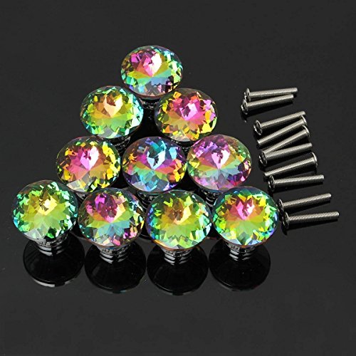 KINGSO カラフルなクリスタルガラス ドアノブ プルハンドル 食器棚 ワードローブ 引き出し キャビネット用 10個セット