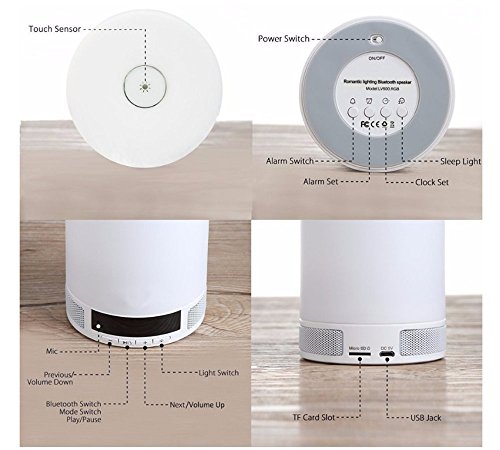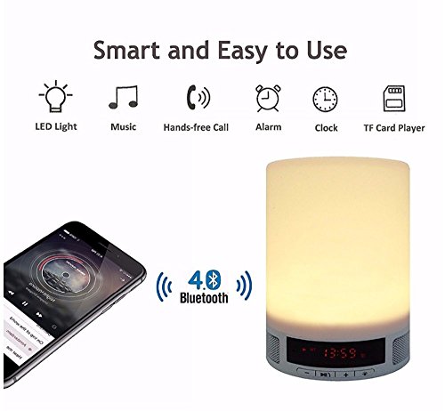 - LED Bluetoothスピーカー、TFカードmp3音楽プレーヤー、ハンズフリースピーカーフォン、時計アラーム、夜間ライトとしてALL IN ONE TOUCHランプポータブルスピーカー