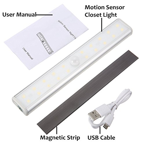 KINGSO USB充電式クローゼットライト Pir LEDモーションライト クローゼットキャビネットワードローブ用 ホワイト