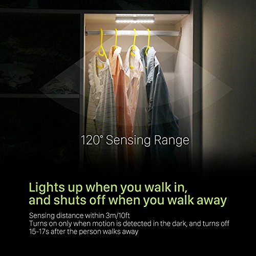 - 自動検出クローゼットライト:高度なPIRセンシング技術を使用する自動検知。ボディが検知エリアに入ると、自動的に点灯。120° and 5m-8m/16ft- 26フィート。5m-8m/16ft- 26フィートの検知エリアを出ると15秒後に照明は消灯します。