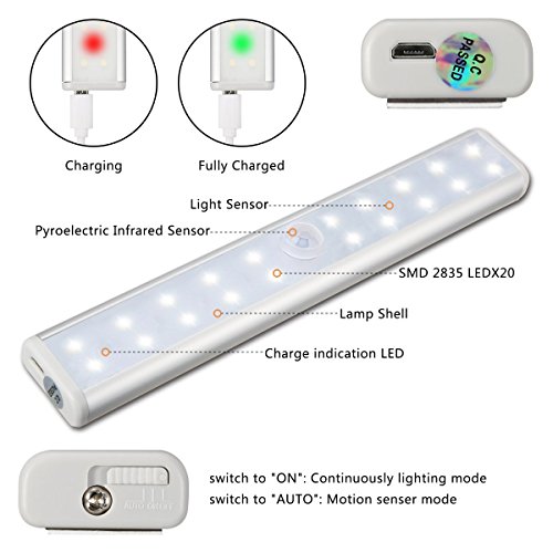 - USB充電式LED、クローゼット用ライト:高性能内蔵リチウムバッテリーは付属のUSBケーブルで簡単に充電できます。誘導ファイルの充電は、4~5000時間の使用中に一度だけ必要です。3時間使用できます。
