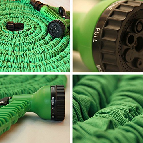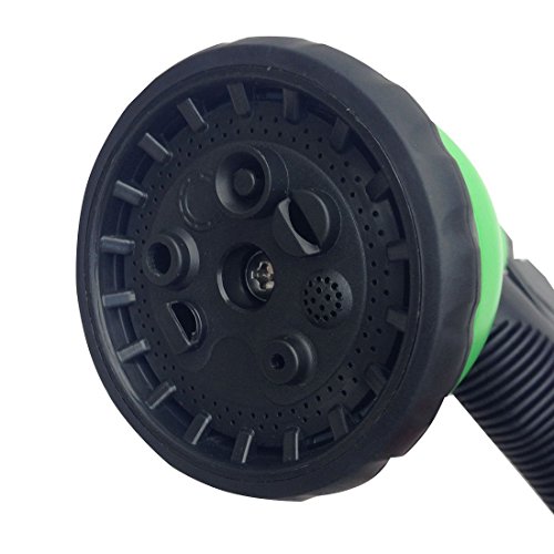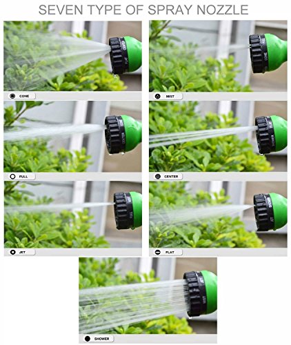 散水 ホース KINGTOP 伸縮ホース 15メートル 伸びる マジック ホース リール 二層構造ゴム 7種散水パターン プラスチック製ボールロック 改良版 洗車/庭/ガーデニング/ベランダ/掃除などに (50ft 5m→15m) グリーン 日本語説明書付き