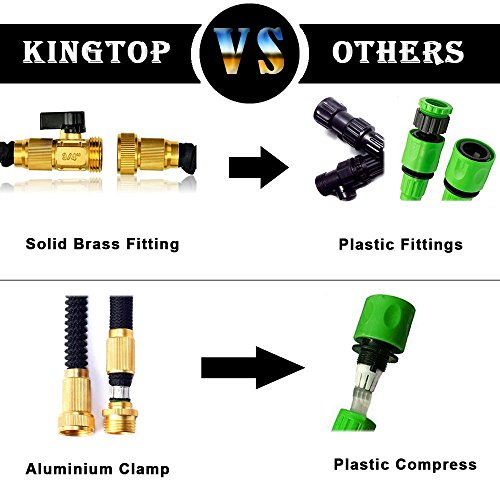 散水 ホース 伸縮ホース KINGTOP 30メートル 強化素材 伸びる マジック ホース リール 二層構造ゴム 8種散水パターン 金属製ボールロック 限定改良版 洗車/庭/ガーデニング/ベランダ/掃除などに (100ft 30m) ブラック 日本語説明書付き