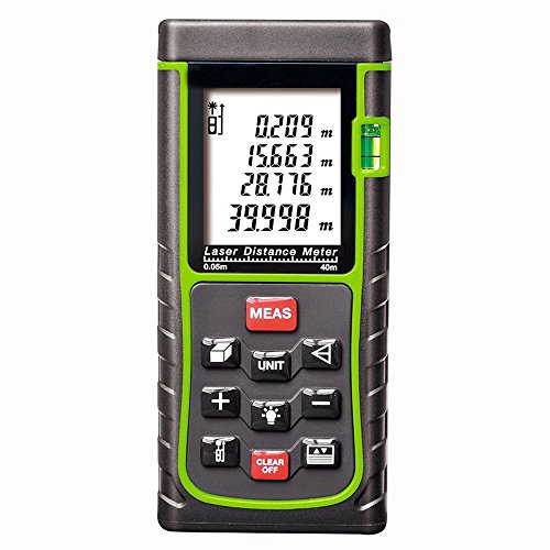 KINGTOP レーザー距離計 携帯型距離測定器 最大測定距離40m LCDデジタル表示 IP54防塵 防水性能 バックライトディスプレイ搭載 自動計算 電池付き 1年保証付き バージョンアップ版 (E-40)