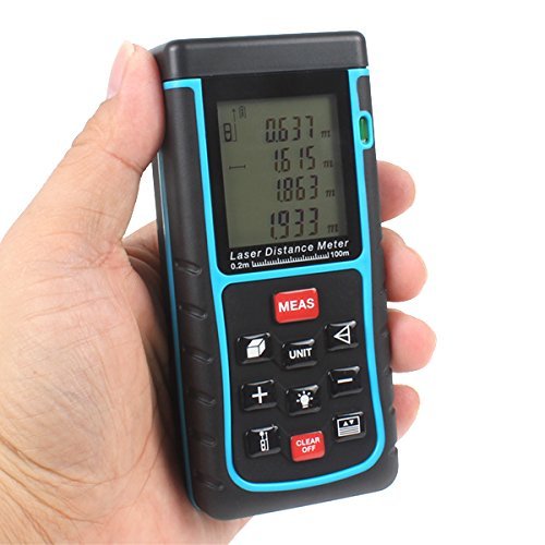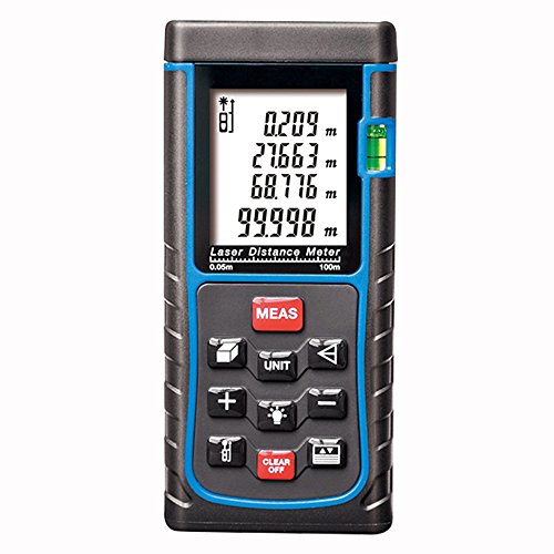KINGTOP レーザー距離計 携帯型距離測定器 最大測定距離100m LCDデジタル表示 IP54防塵 防水性能 バックライトディスプレイ搭載 自動計算 電池付き 1年保証付き バージョンアップ版 (E-100)