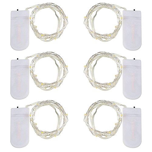 KINGTOP LEDイルミネーションライト6個同梱 2メートル 20球 電池式 クリスマスLED電飾 防水ストリングライト 銀線ガーデンライト 結婚式 パーティー 庭などに最適 (ウォームホワイト)