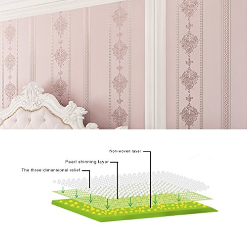 KINLO DIY 壁紙 3D立体 ヨーロピアンスタイル 壁の装飾 高品質の不織布 接着剤必要 0.53M×10M(1ロール) カラー:ピンク