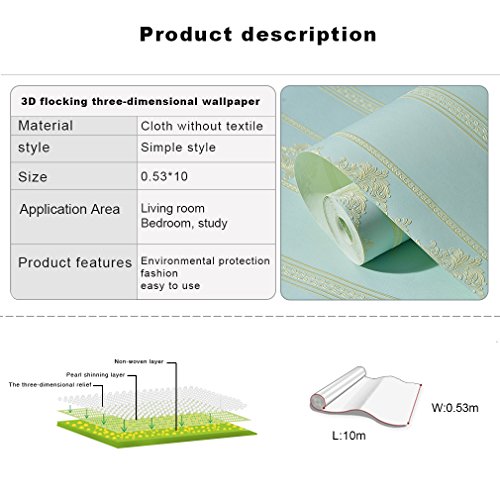 KINLO DIY 壁紙 3D立体 壁紙はがせる ヨーロピアンスタイル 壁の装飾 高品質の不織布 壁紙 補修 接着剤必要 0.53M×10M(1ロール) カラー:ブルー