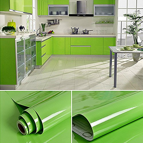 KINLO DIY 壁紙 キッチン戸棚シート 台所ステッカー はがせる ウォールステッカー 防水 耐熱 防油汚れ 0.61M×5M(1ロール) カラー:グリーン