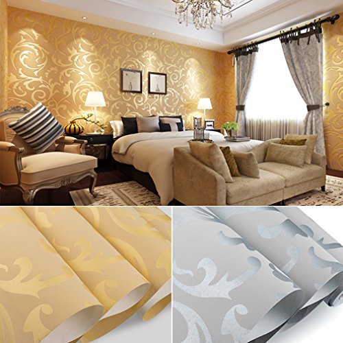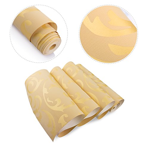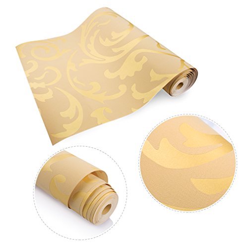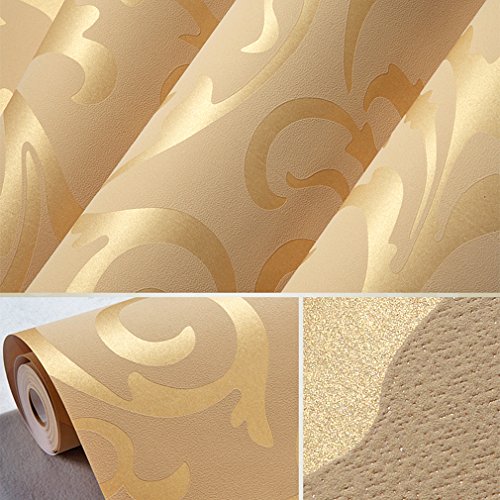 KINLO DIY 壁紙 はがせる 0.53*10M (1ロール) 壁紙シール おしゃれ 良い材質 立体感 壁紙 子供部屋/ベッドルーム/ホテル 壁の装飾 簡単 模様替え 接着剤必要 (ゴールデン色)