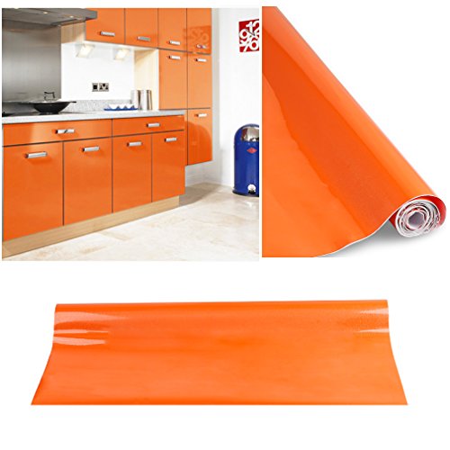 KINLO DIY 壁紙 キッチン戸棚シート 台所ステッカー はがせる ウォールステッカー 防水 耐熱 防油汚れ 0.61M×5M(1ロール) カラー:オレンジ