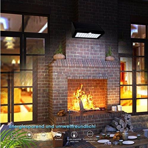 KIYOYO 38個高輝度 LED ソーラーLEDライト センサー搭載 アウトドアライト 夜間自動点灯 表玄関/壁掛け/パーク/ガーデン/庭などに照明用 4400mAh充電式ソーラーライト白(色温度 約6000K~6500K) IP65防水 (ブラック)