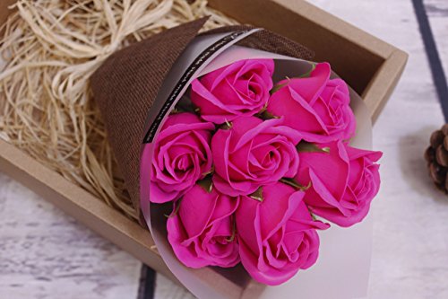 KIZAWA 枯れない花 ソープ フラワー 花束 メッセージカード付き クリスマス 忘年会 新年会 誕生日 結婚祝い バレンタイン ホワイトデー 景品 入学 卒業 結婚記念日 など 様々な お祝い の シーン に 奥様 旦那様 恋人 友人 子供 同僚 上司 など 大切な人に 感謝 と 愛 を 伝えましょう(7本, ローズレッド)