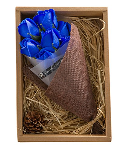 KIZAWA シャボンフラワー フレグランス ソープフラワー 枯れない花 石鹸花 ブルーローズ 花束 メッセージカード付き バレンタインデー ホワイトデー プレゼント ギフト 誕生日プレゼント 結婚祝い 結婚記念日 母の日 父の日 敬老の日 還暦祝い など お祝い の日 に 両親 旦那様 恋人 友人 子供 同僚 上司 など 大切な人に 感謝 を伝える フラワーアレンジメント (7本, ブルー)