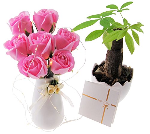 - シャボンフラワー:石鹸の素材から作られたほのかな香り付き観賞用のお花です. 生花のように生き生きし香りが気持ちいい、新しいタイプのお花です。花粉やにおいの発生、細菌の繁殖がありません。水やり・水換えなどの世話をする手間も要りません。LEDイルミネーション:簡単にライトアップ!点灯時でも熱を出さないので観葉植物などにも優しいです。