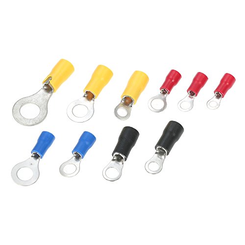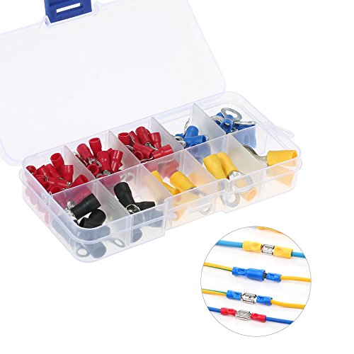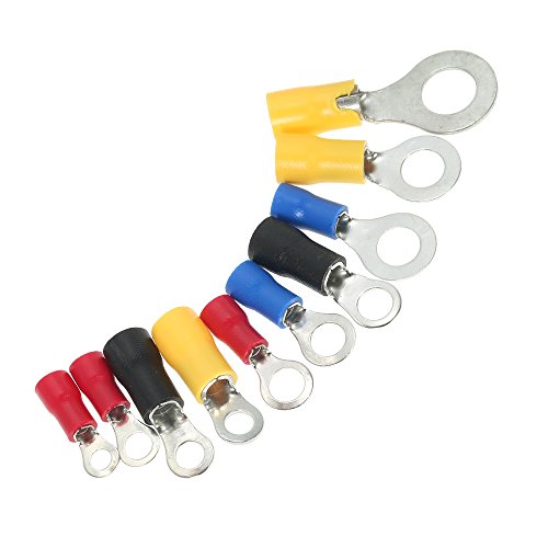 KKmoon 102個入り 絶縁端子セット リングエンド 丸型 10種類 銅圧着 電線接続 ケーブルコネクタキット コード端子 収納ボックス付き