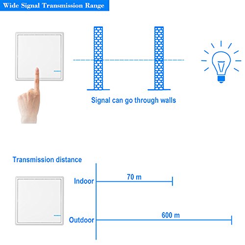 *信頼できる範囲。各スイッチ送信機のユニークなコードは、意図された受信機のみを作動させる。同じ家庭で複数のユニットを干渉なく使用できます。