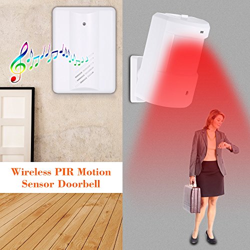 KKmoon 無線ドアチャイム ワイヤレスPIRモーションセンサー ドアベル長距離伝送 音量調整可