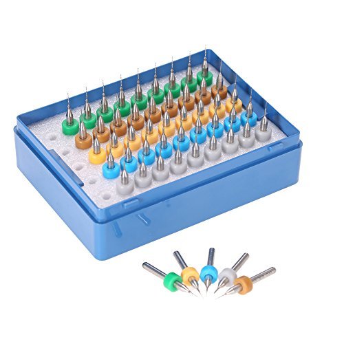 KKmoon 50個 PCBドリル 0.25 + 0.3 + 0.35 + 0.4 + 0.45mm タングステンカーバイドマイクロ ドリルビットセット彫刻ツール PCB回路基板用